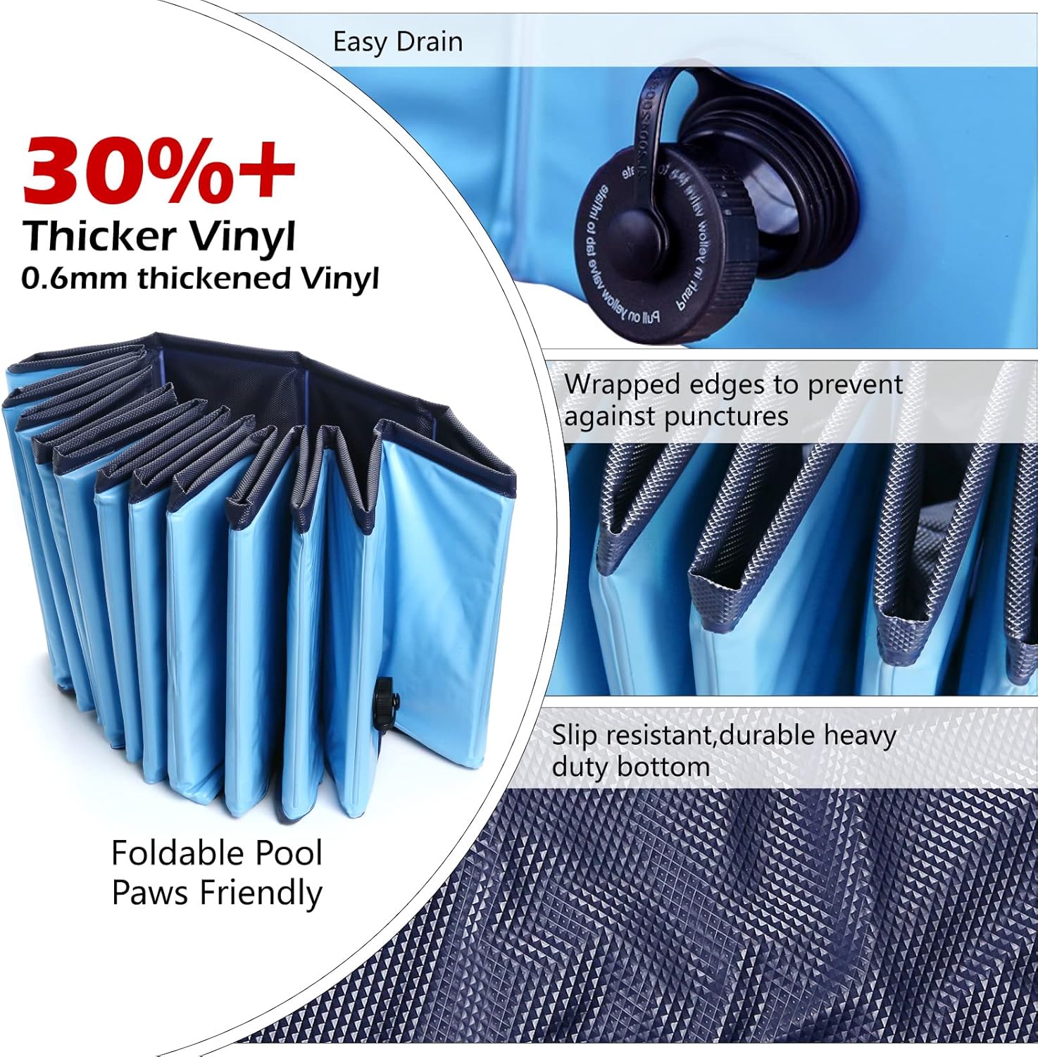 - Portable and Foldable Dog Pool --- This pet pool is foldable, easy to store and it is easy to transport with you and your dog wherever you go. It can be used as doggie pool, kiddie pool, kids pool, wading pool, pet dog bath tub ball pit outdoor dog water toys etc.