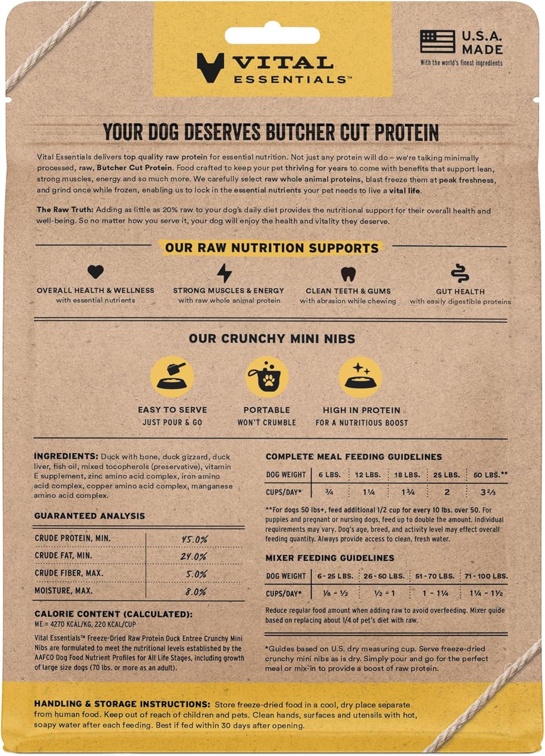 Vital Essentials Freeze-Dried Raw Duck Meal or Mixer Dog Food Crunchy Mini Nibs, 5.5 oz