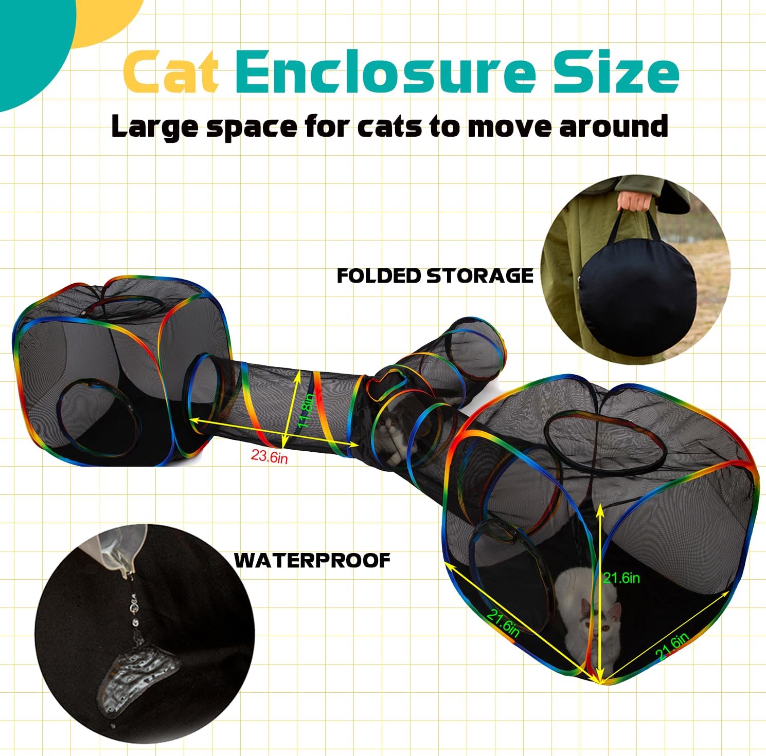 LUCKITTY Outdoor Rainbow Cat Enclosures Playground,Outside House for Indoor Cats Include Portable Tent, 3 Way with 2 Cube Tunnel, for Kitty and Small Animals,Within Storage Bag