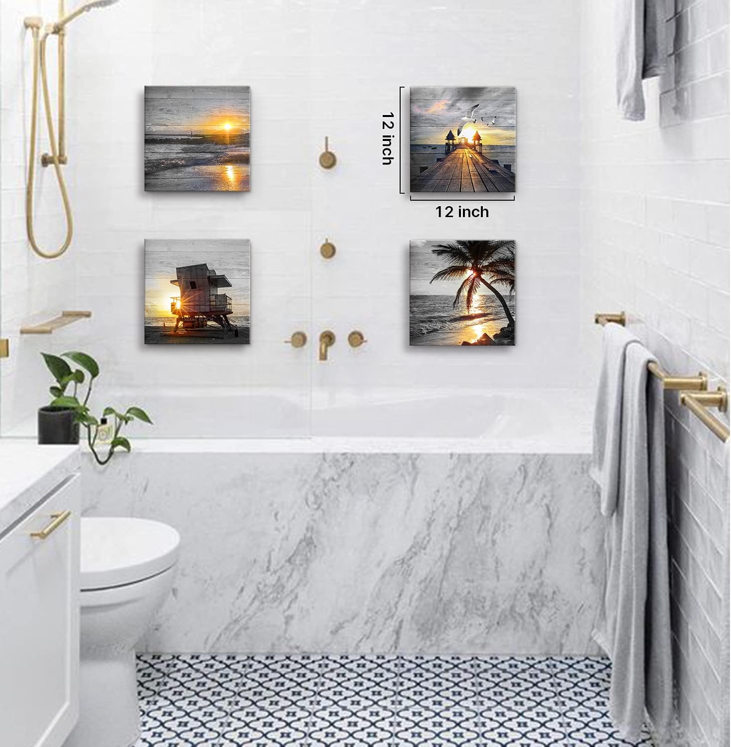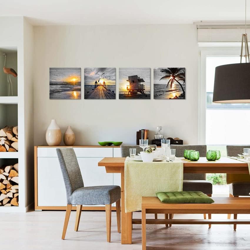 - ๐Beach wall art picture for bathroom SIZE:12"x12"x4pcs (30x30cmx4pcs)