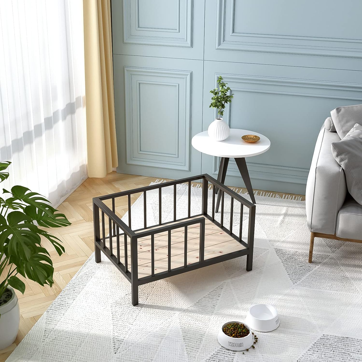 Dog Bed with Rails - Elevated Pet Metal Bed Frame with Solid Wood Board and Washable Soft Mat for Small Dog Indoor or Outdoor Use, 21.3" x 30", Black