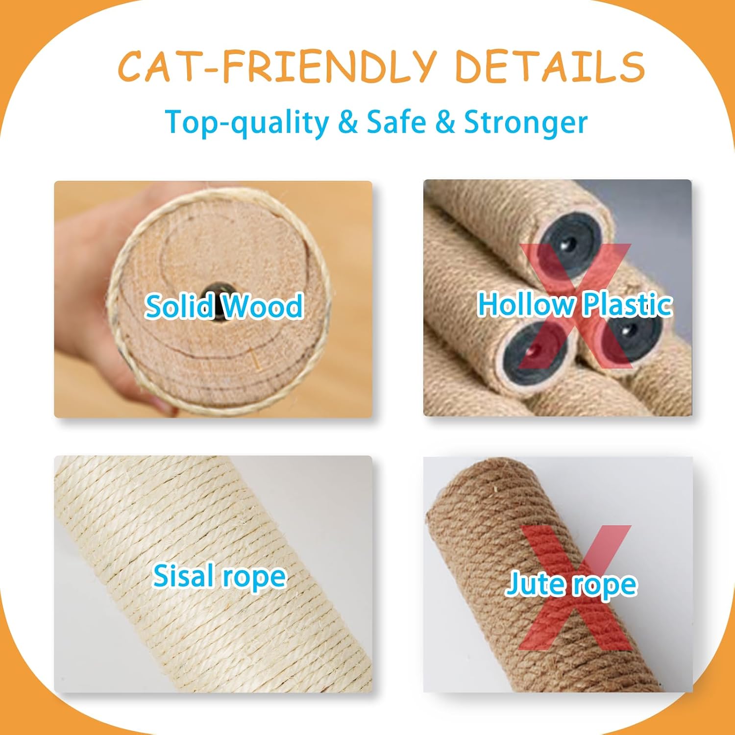- Sturdy & Stylish Pine Wood Construction: Made from high-quality pine wood, this cat climbing furniture is both durable and stylish. The natural wood finish blends well with any home decor, providing a sleek and modern addition to your living space while being sturdy enough to support your cats’ weight