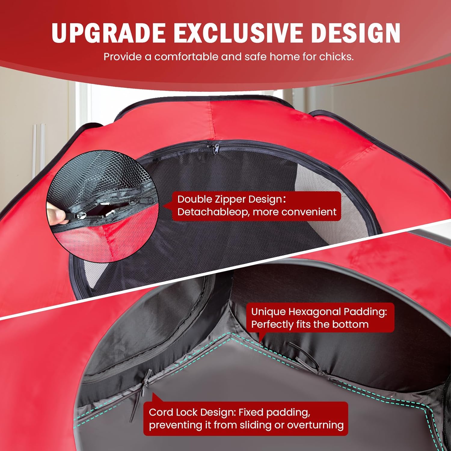 - EASY TO PUT UP & FOLD - Featuring a pop-up design and built-in frame, the Tetuga chicken brooder box is easy to open and close. It includes 3 ground pegs for outdoor use and folds into a plate-sized storage bag