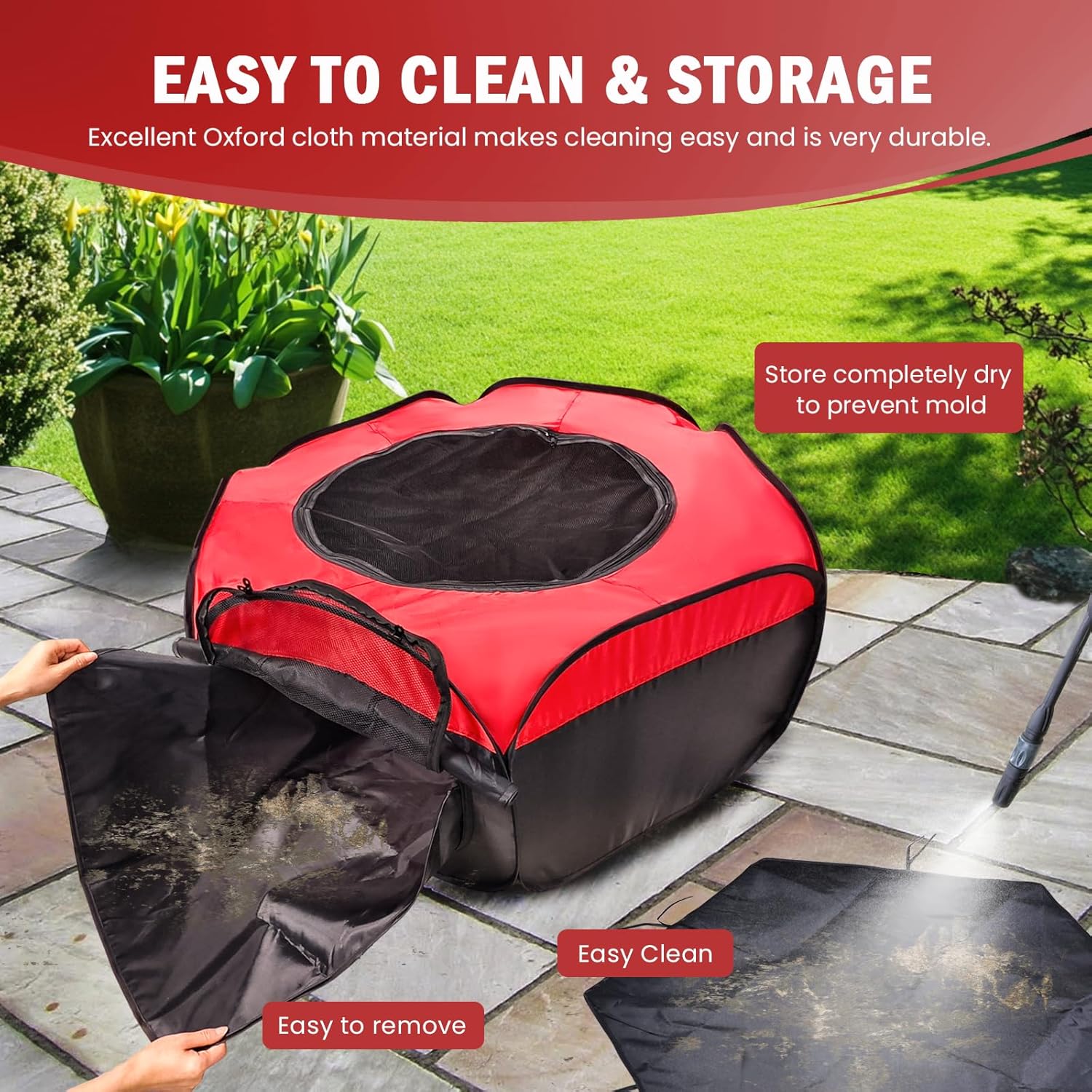 - EASY TO CLEAN - The Tetuga chick brooder pen, crafted from durable Oxford cloth, is washable and dries quickly. For a deep clean, hand wash it. The brooder pan board is reusable for easy upkeep. Tip: Ensure the pen is fully dry before putting it away