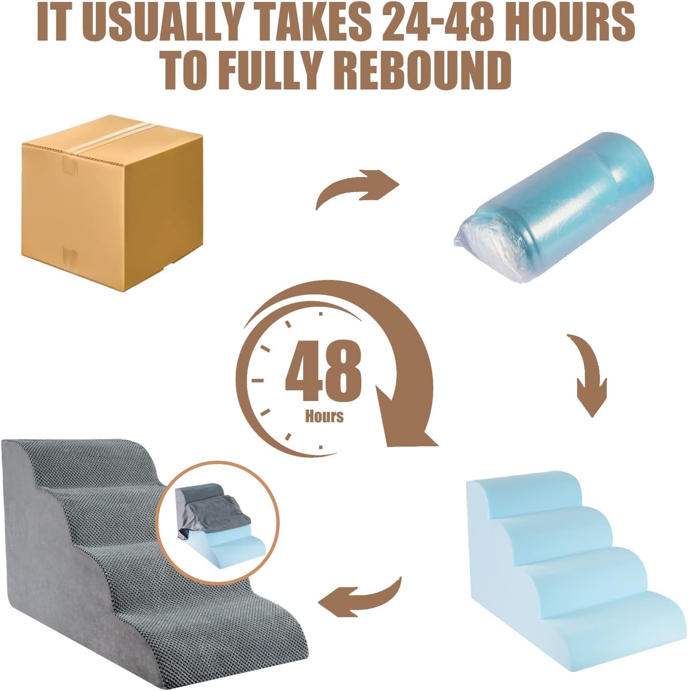 - The best size:Looking for the perfect pet stairs for small dogs? Look no further than our four-step option, designed with your furry friend's comfort in mind. With a height of 20.5 inches, these stairs are the ideal fit for most beds and sofas, while a length of 29 inches ensures that your pet can walk up and down the slope with ease. Give your furry friend the gift of comfort and convenience with our pet stairs for small dogs!