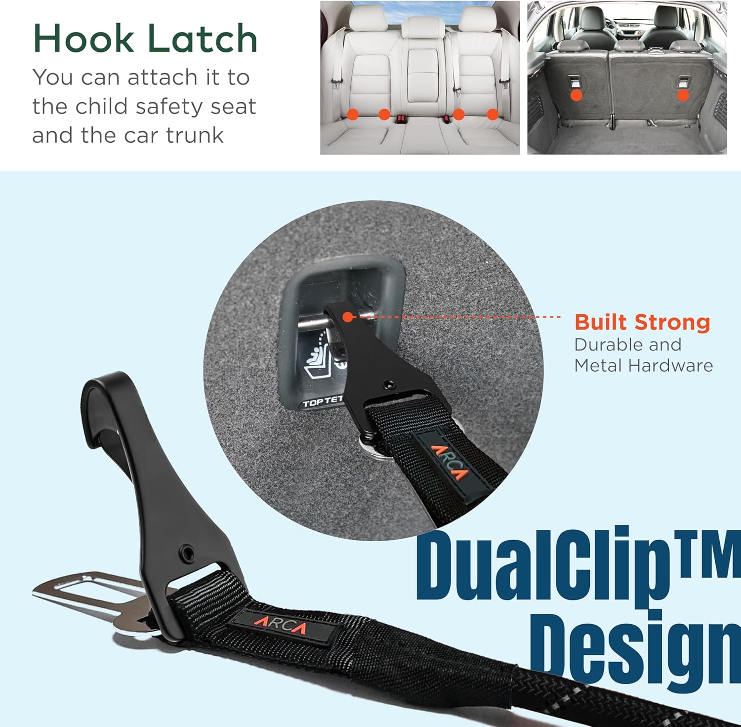 - DUAL BUCKLE SECURITY: a seatbelt buckle for easy attachment to car seats and a sturdy metal hook latch for versatile use in the front seat, back seat, or trunk, ensuring optimal safety for your pet.