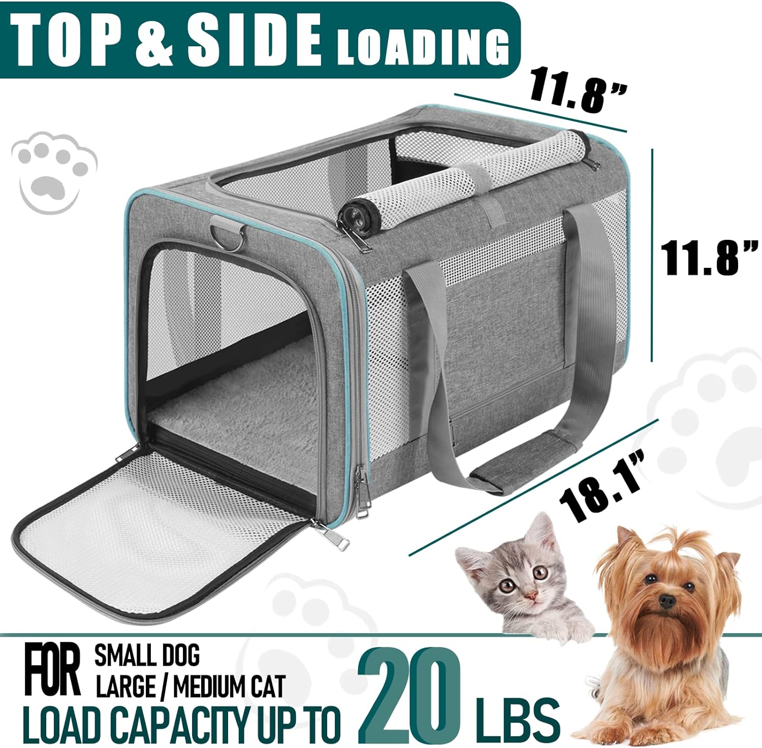 Pet Carrier for Large Cats 20 lbs+ / Soft Sided Small Dog Travel Carriers Top Load/Collapsible Carrier Bag for Big Cat / 2 Kittens Sturdy Transport Carriers Long Trips/Medium Cats 15 pounds