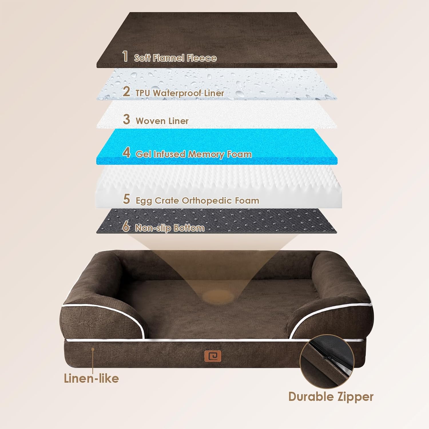 EHEYCIGA Orthopedic Dog Beds for Extra Large Dogs, Waterproof Memory Foam XL Dog Bed with Sides, Non-Slip Bottom and Egg-Crate Foam Big Pet Couch Bed with Washable Removable Cover, Brown