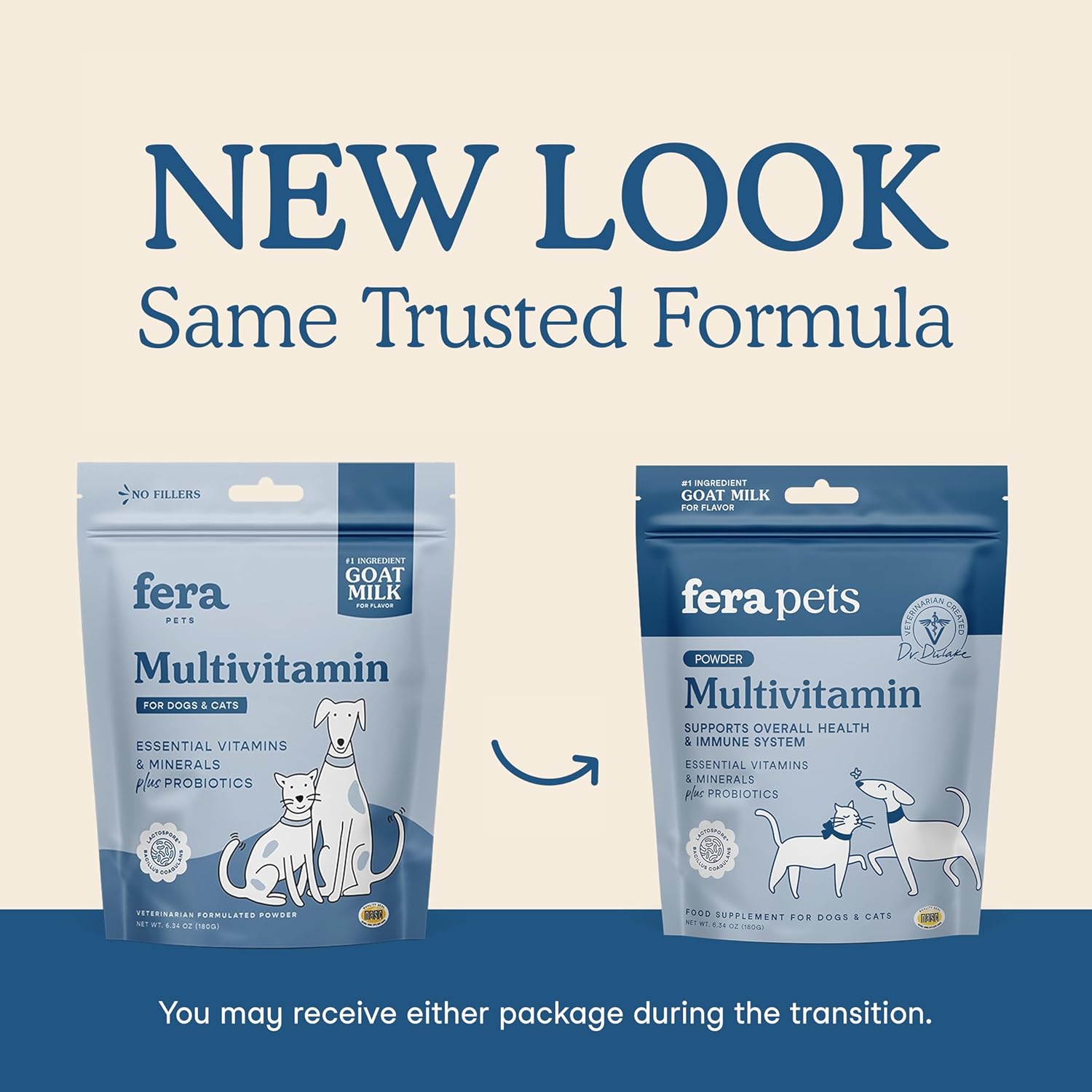 Fera Pets Goat Milk Topper - Multivitamin for Dogs & Cats with Probiotics - Supports Overall Health, Gut Health, and Immune System - for Picky Eaters - 60 TSP