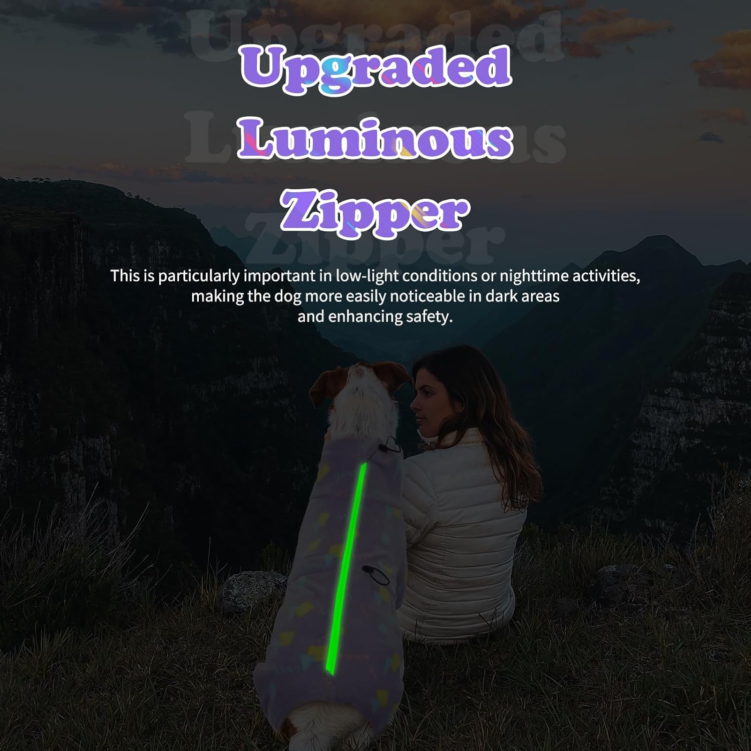ROZKITCH Dog Pajamas Warm Coat, Pet Windproof Warm Cold Weather Jacket Vest with Luminous Zipper, Jumpsuit Apparel Outfit Clothes for Small Medium Large Dog Geometry S