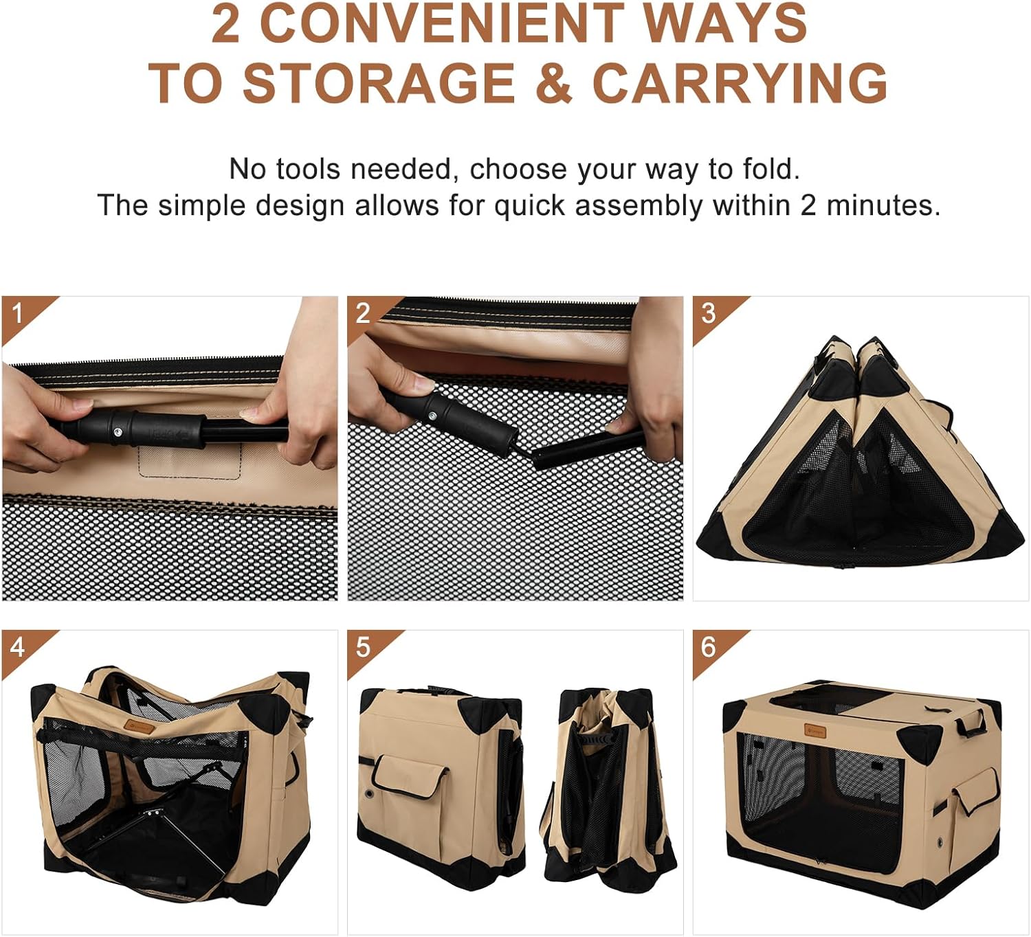 - Stable Structure: The foldable crate is made with a sturdy steel frame and high-quality waterproof Oxford fabric, ensuring that your pet is safe and secure while inside. The mesh windows allow for ventilation, while the zippered door makes it easy to access your pet.