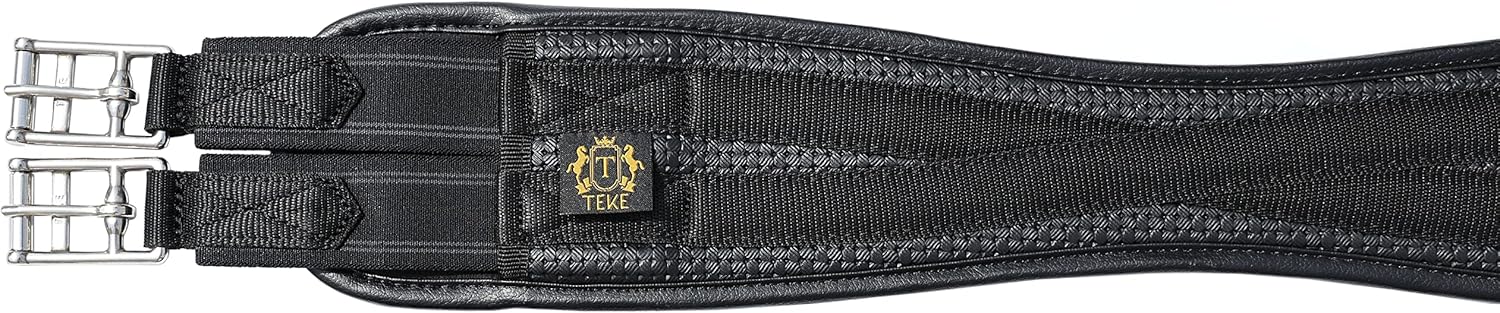 T TEKE Contoured Chafeless Girth for Horses, Airflow Waffle PVC Foam Construction with Double Side Heavy Duty Cotton Elastic and Stainless Steel Buckles (38"-56")