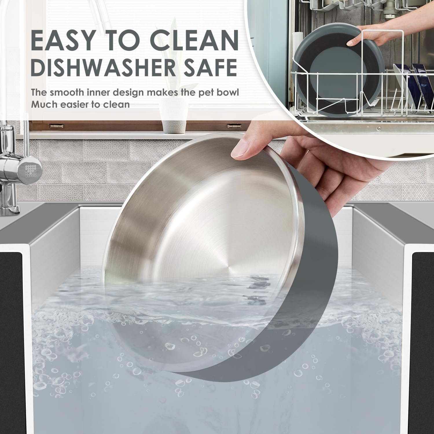 - ๐ใSafety DesignใPet feeding bowl adopts mirror polishing process, which has an elegant look and smooth touch. The flat edges will not hurt the dog's tongue, rust-proof and easy to clean.