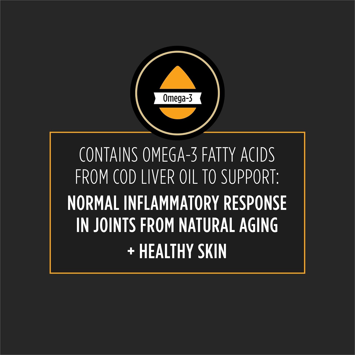 - Contains Omega-3 fatty acids for dogs from cod liver oil to support normal inflammatory response in joints from natural aging and healthy skin and coat for dogs