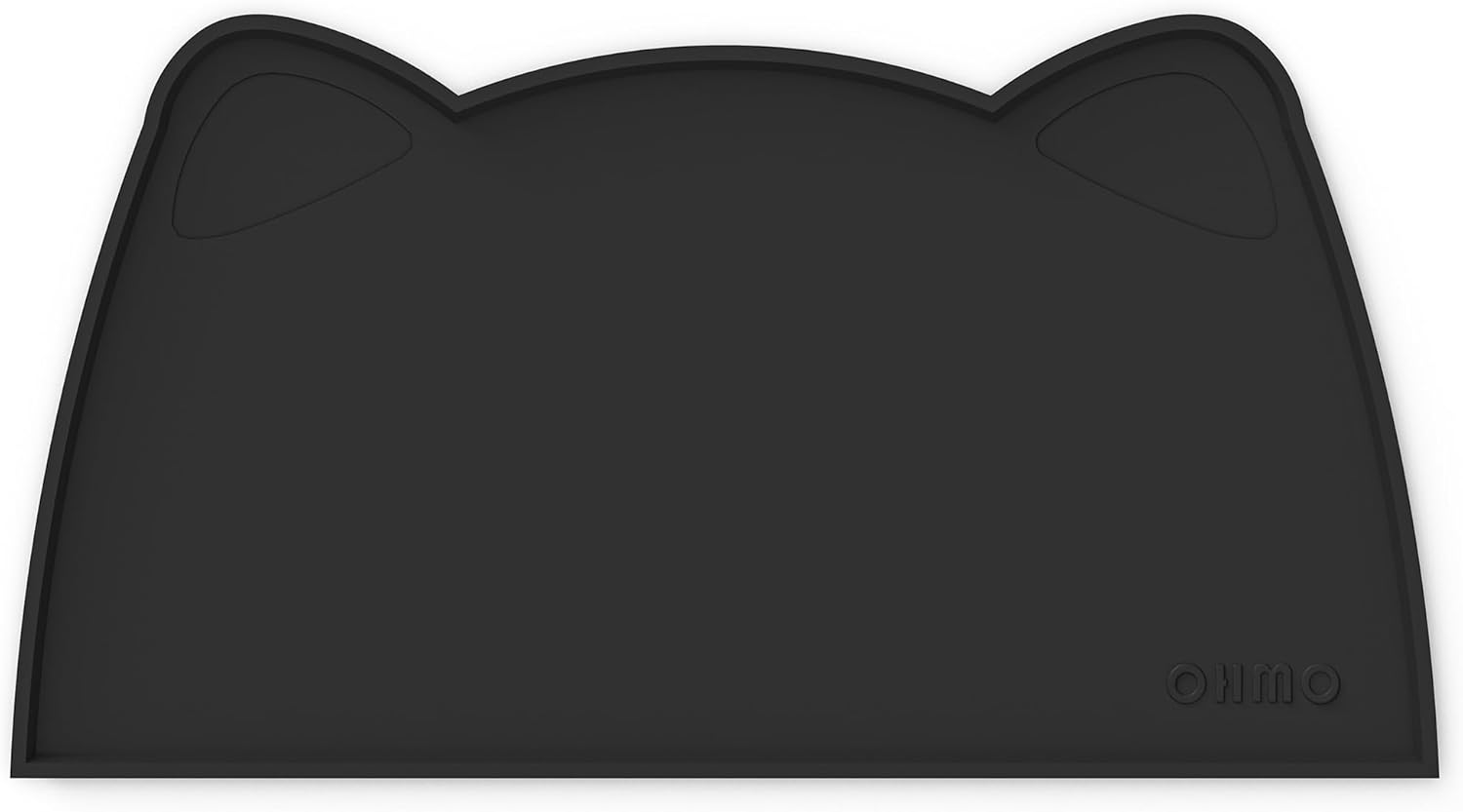 OHMO - Cat Food Mat, Silicone Pet Feeding Mat for Floor Non-Skid Waterproof Dog Water Bowl Tray, Easy to Clean Pet Placemat (Black, 20 * 12'')