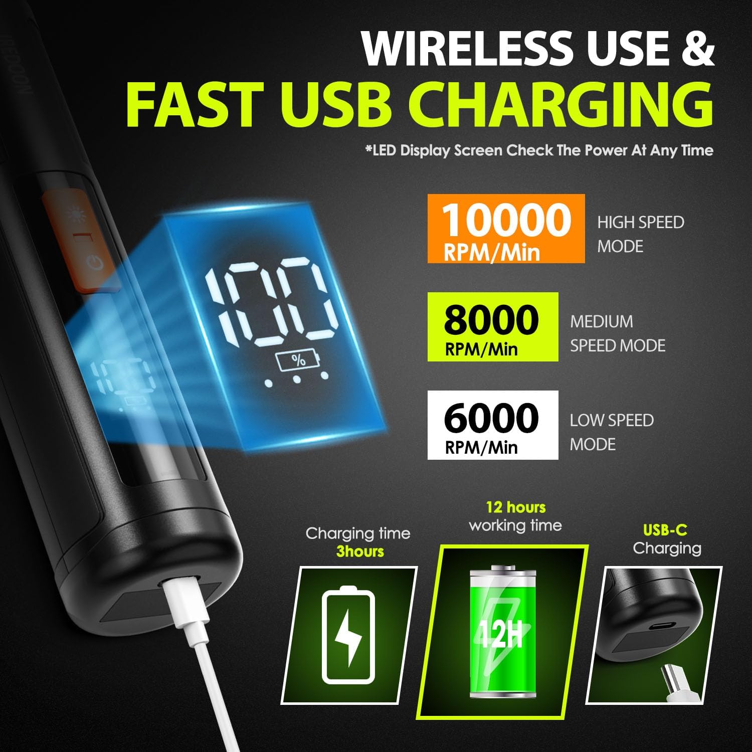 - 【LED Display Screen】: The LED display screen helps you monitor the battery level and the speed setting, which frees you from power anxiety.