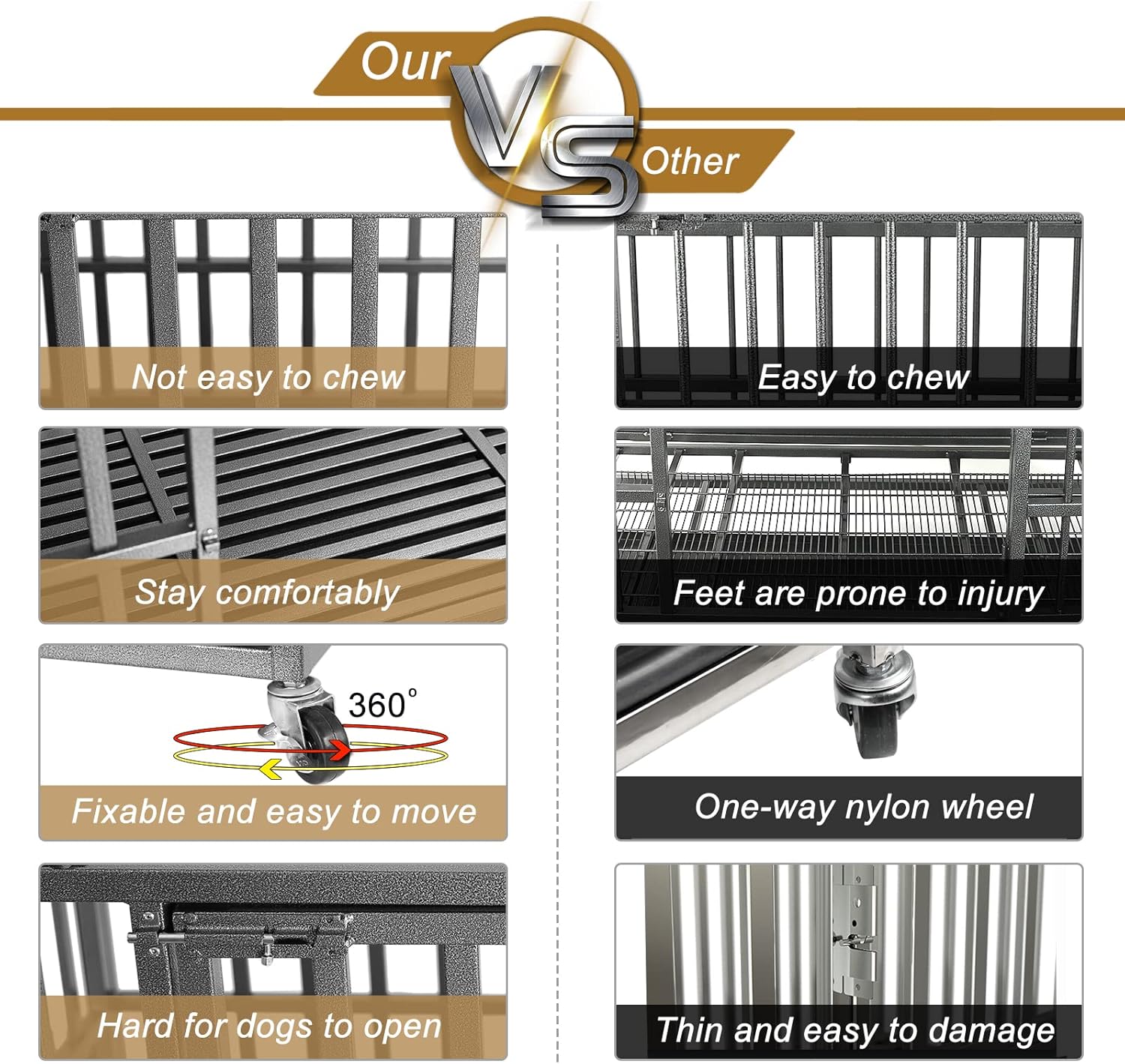 - Non-toxic: Our heavy duty dog crates Made out of STEEL and having all parts welded which means our heavy duty dog cage can prevent even the most aggressive canines from escaping. Sturdy metal frame provides optimal ventilation and visibility which offer your dog a comfortable and reliable environment. It is suitable for indoor and outdoor use.Safe and non-hazardous dog cages protect your pet's health, so you don't have to worry when it chews and licks.