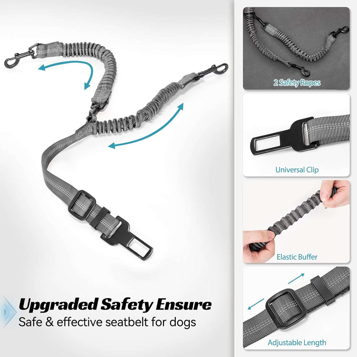- [Upgraded Safety Rope] The car seat for dogs comes with an upgraded leash, that directly connects the pet vest to the car seat belt buckle through a special seat belt tongue. The elastic buffer design can protect your dog from sudden braking or sharp turns. Removable safety rope suitable for 1 or 2 pets.