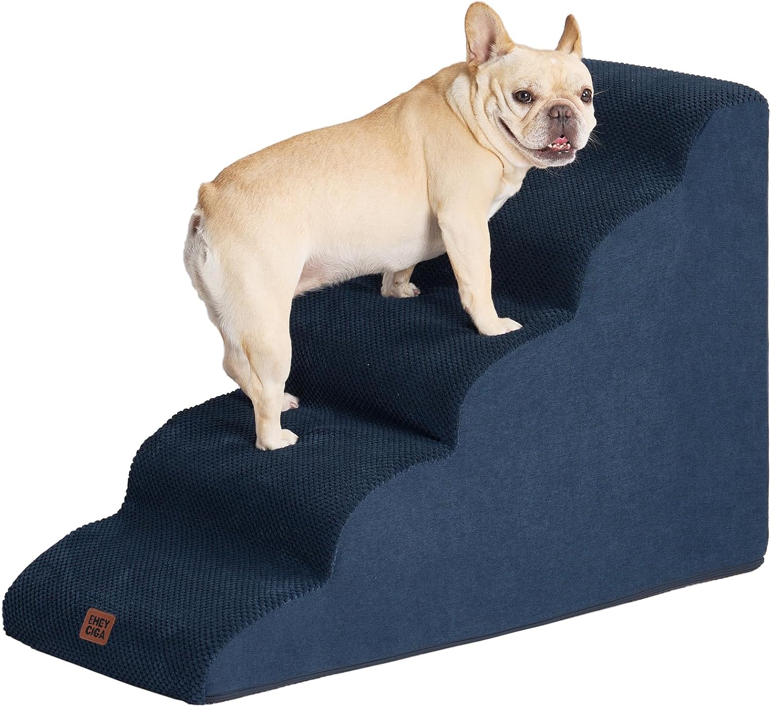 EHEYCIGA Curved Dog Stairs Ramp for High Beds 22.6" H, 5-Step Dog Steps for Small Dogs and Cats, Pet Stairs for High Bed Climbing, Non-Slip Balanced Pet Step Indoor, Navy