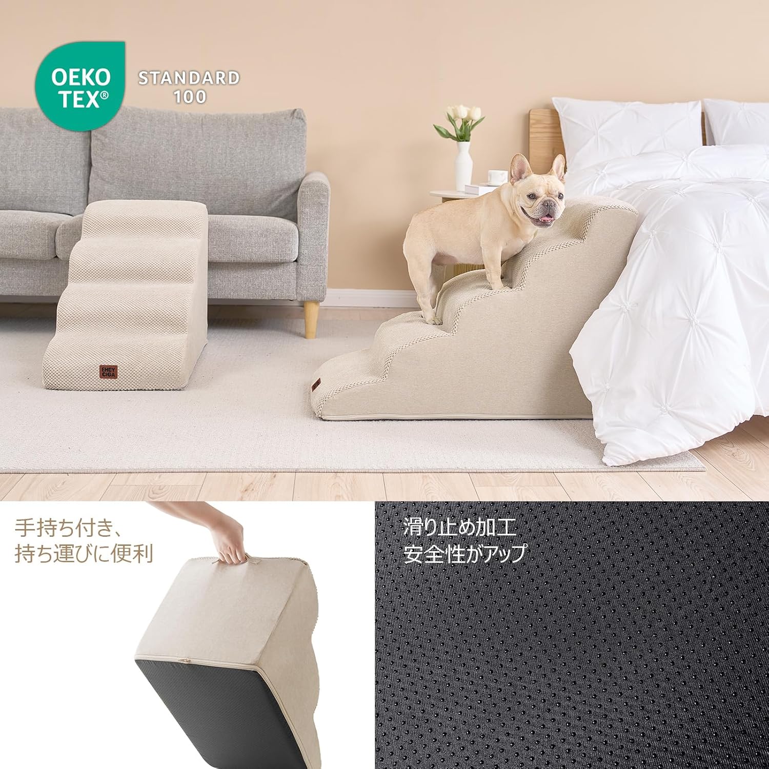 - SPECIFIC AND STEADY DESIGN - 33D density of pure foam make this stair more steady when your pets walk on. The dog bed stairs can provide strong support for pets in the walking process. Low angle slope design can better protect your pet's joints.