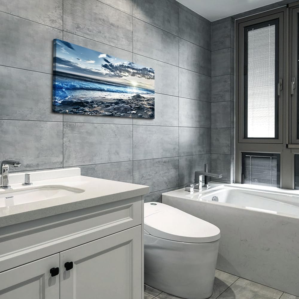 Wall Art For Living Room Wall Decor For Bedroom Large Size Poster Blue Beach Sun Ocean Landscape Paintings Prints Artwork Bathroom Decorations Seascape Canvas Prints Hang Pictures Office Home Decor