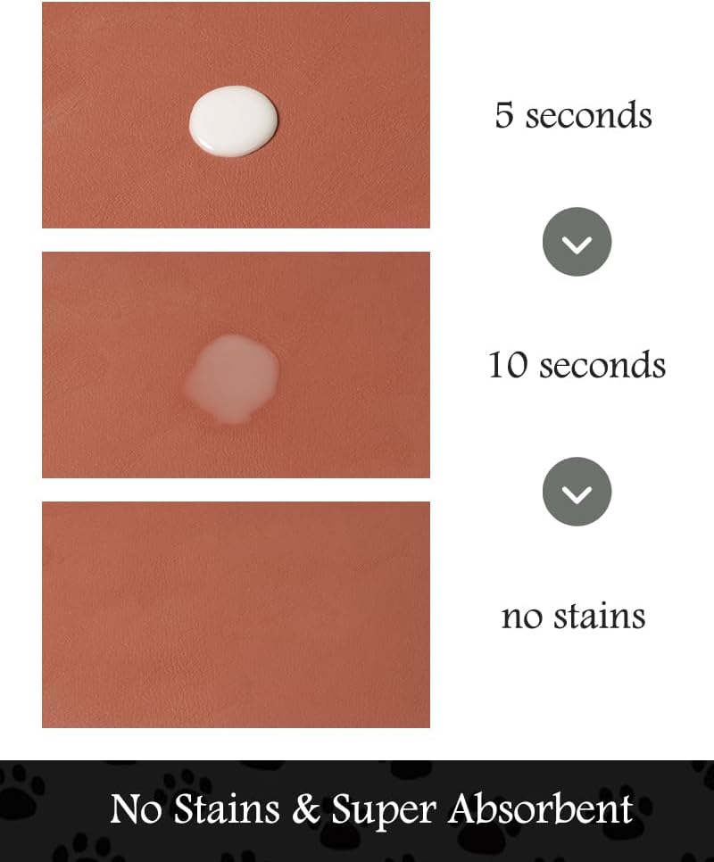 - Super Absorbent & Durable: Perfect pet supplies.This pet food mat can prevent liquid from overflowing. Super absorbent and quick-drying ability to avoid wetting pet paws even for messy drinkers. Sturdy dog & cat food bowl mat cannot be torn easily and avoid eating by mistake. Keep the pet's eating environment tidy and clean.