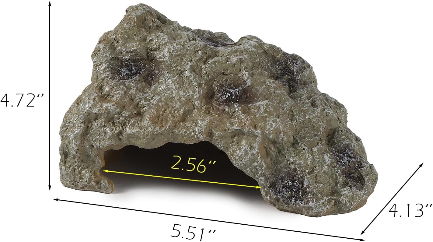 - Size – The cave has a suitable size entrance (Please read the measurement pic for details). The edges of this reptile cave and rock are crafted exquisitely to be smooth and safe to avoid cutting your pet. This reptile rock creates a comfortable and natural hide for ball python, bearded dragon, leopard gecko, tortoise and lizards, etc.