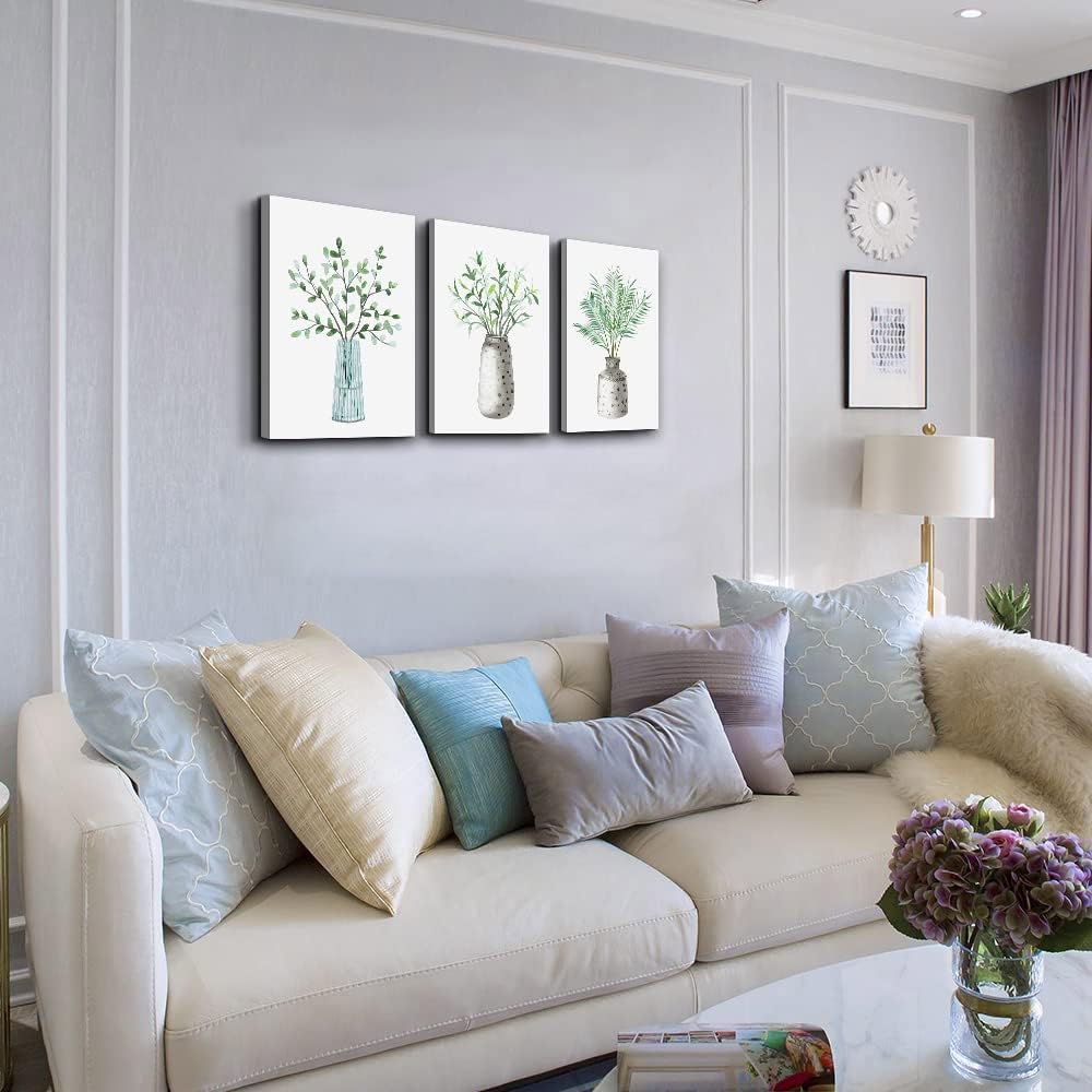AHUASJART Canvas Wall Art Paintings For Kitchen Dining Room Large Size Wall Decor Living Room Wall Decoration For Bedroom Office Decor Green Leaf Vase Wall Pictures Artwork For Home Walls 3 Piece