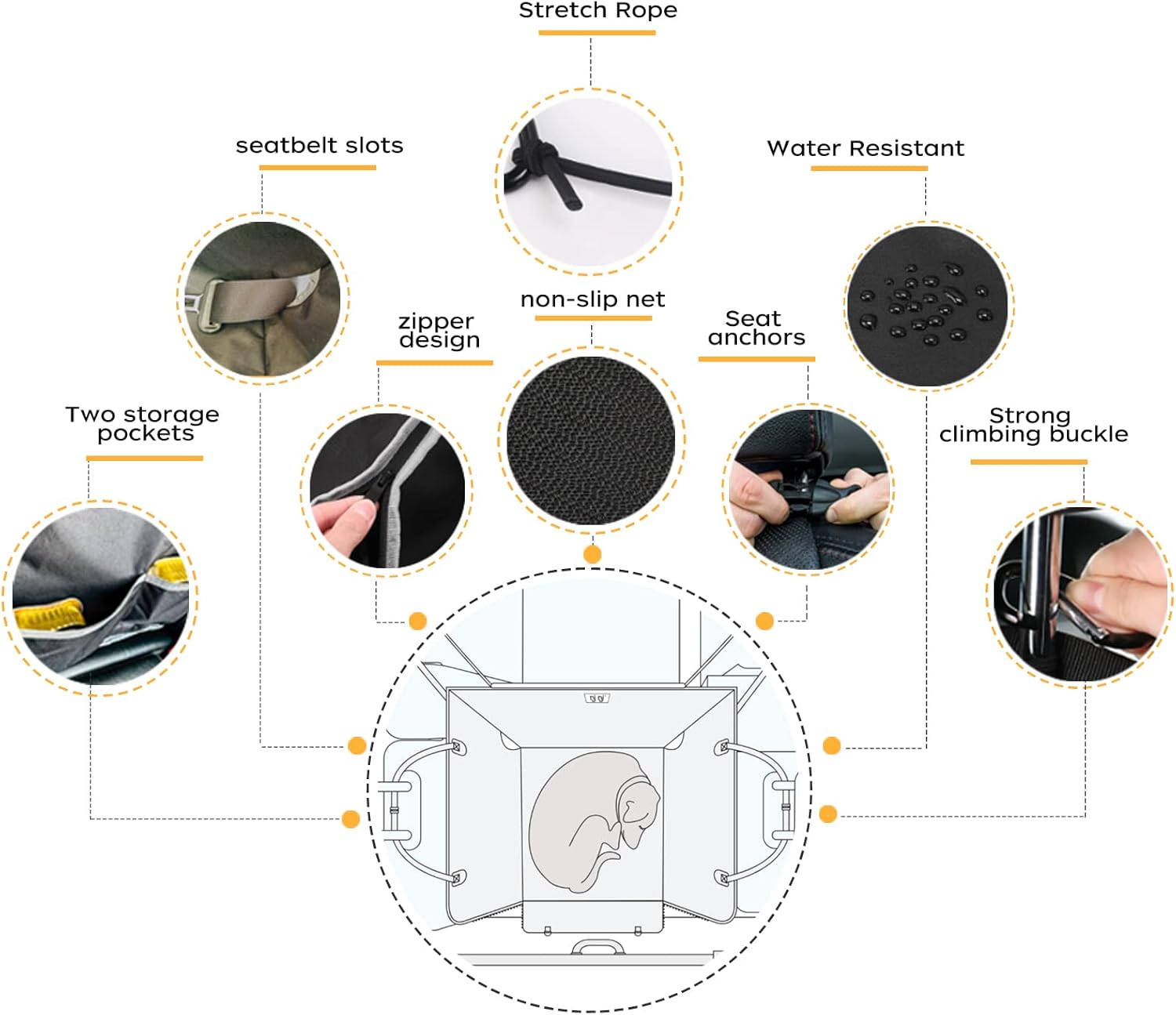 - HALF HAMMOCK DESIGN - This uniquely designed dog car seat cover for backseat allows you to keep half the backseat vacant for baby seat, for a passenger or simply to keep it empty for your groceries, suit, bags, etc.You can sit together with your furry friend during the road trip.