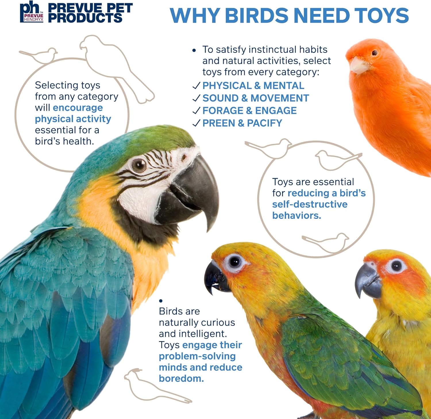 - Constructed of a variety of materials: bird-safe metal chain, hard plastic balls, cubes and flower shapes - to keep birds stimulated and engaged