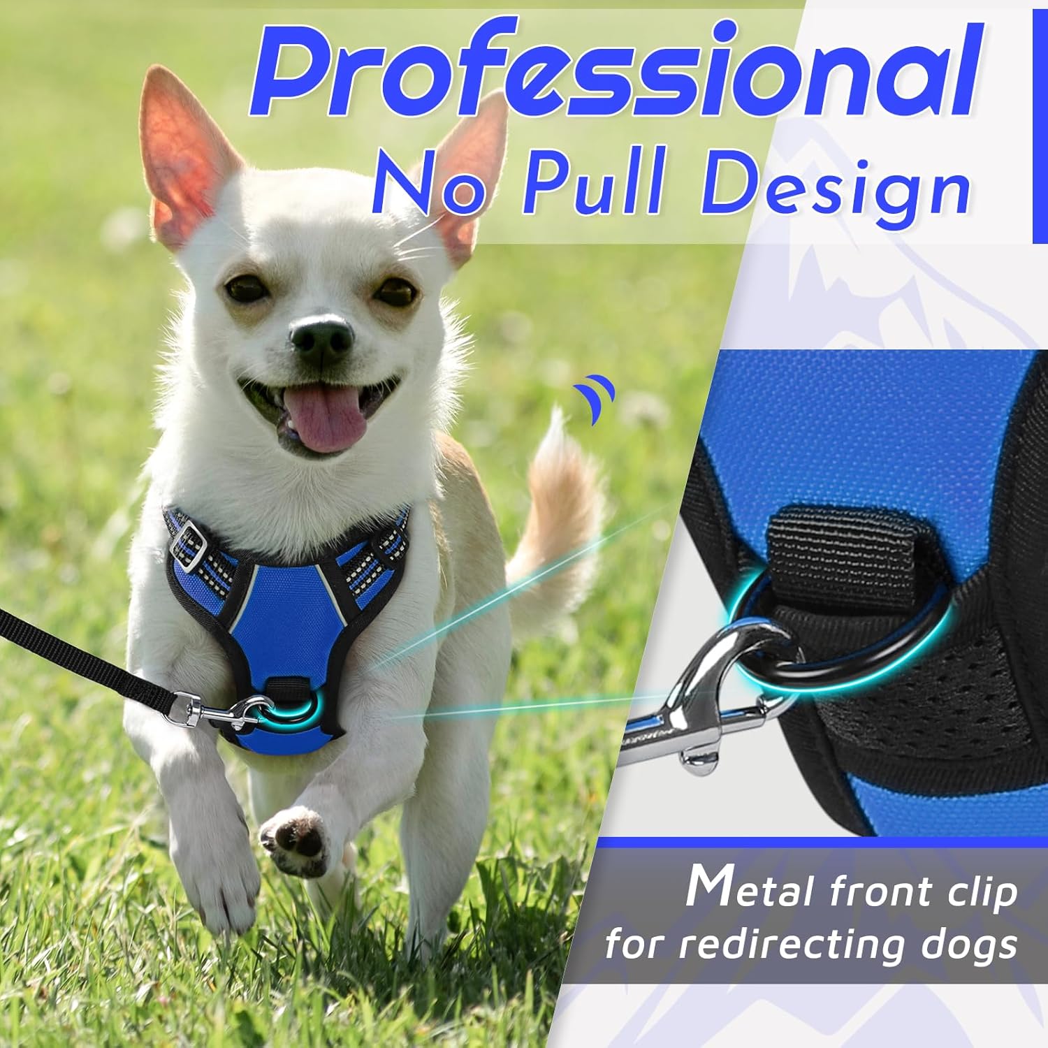 - No Pull & Better Control: Our no pull dog harness is typically designed with 2 sturdy metal leash rings for leash attachment. If you use the front hook on the chest, it will reduce the pulling, a perfect choice for dog training. The back leash ring is great for casual walks, jogging, hiking, etc.