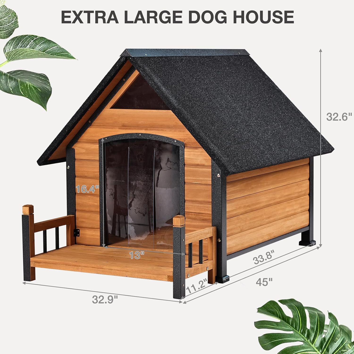 - Large Size: Oversize:45"D x 32.9"W x 32.6"H. The space in the dog shelter is suitable for dogs up to 100 pounds.