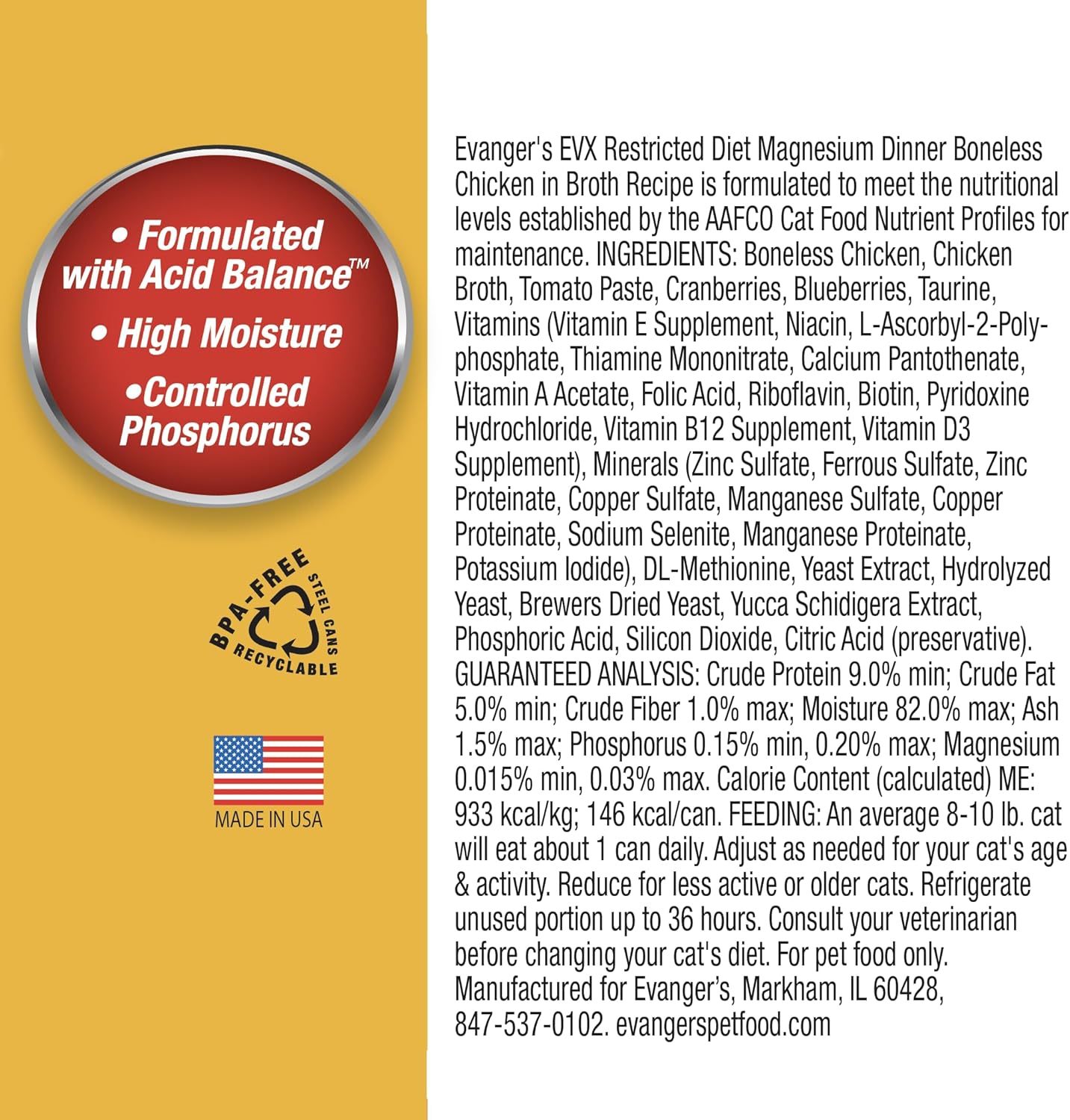 Evanger’s EVX Restricted Diet Magnesium Canned Cat Food – 24 Count, 5.5 oz Cans Each – Boneless Chicken in Broth with Berries – Grain Free, Limited Ingredients, Stew Style