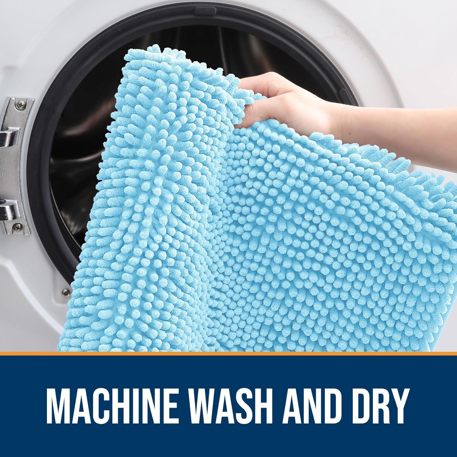 OLANLY Dog Door Mat for Muddy Paws 59x24, Absorbs Moisture and Dirt, Absorbent Non-Slip Washable Doormat, Quick Dry Chenille Mud Mat for Dogs, Entry Indoor Entryway Carpet for Inside Floor, Blue