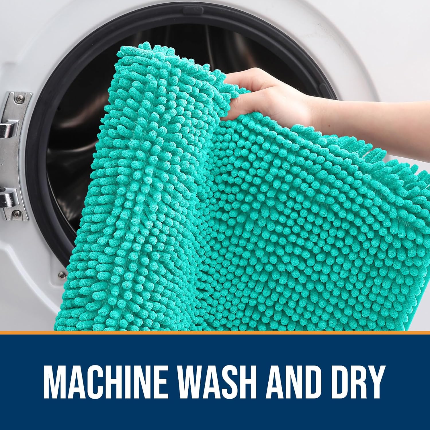 OLANLY Dog Door Mat for Muddy Paws 48x30, Absorbs Moisture and Dirt, Absorbent Non-Slip Washable Doormat, Quick Dry Chenille Mud Mat for Dogs, Entry Indoor Entryway Carpet for Inside Floor, Teal