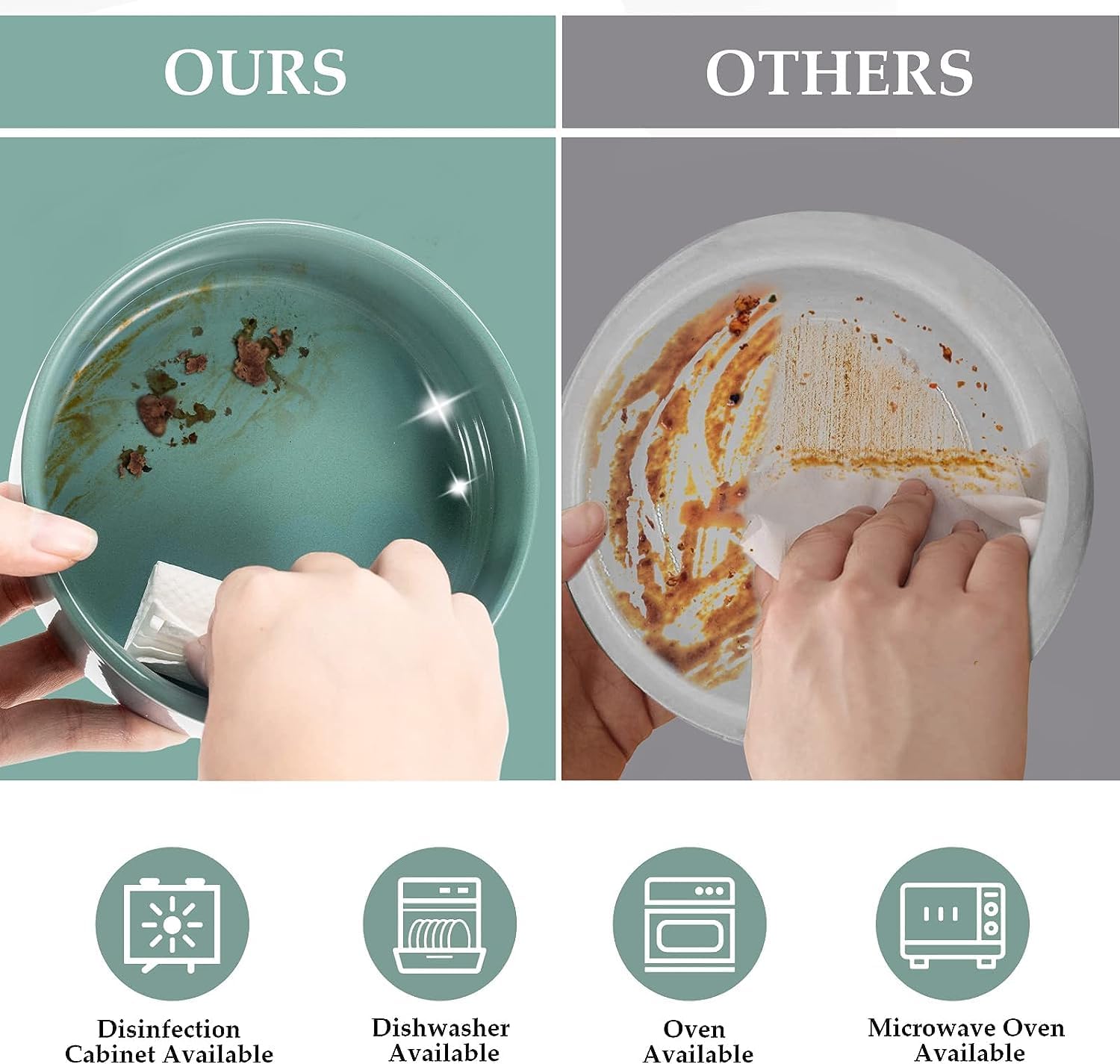 - [Double Bowl Design]:One dog bowl for food and one for water, Each ceramic cat bowl has a Unique wooden stand, raising the dishes closer to your pet for more comfortable eating