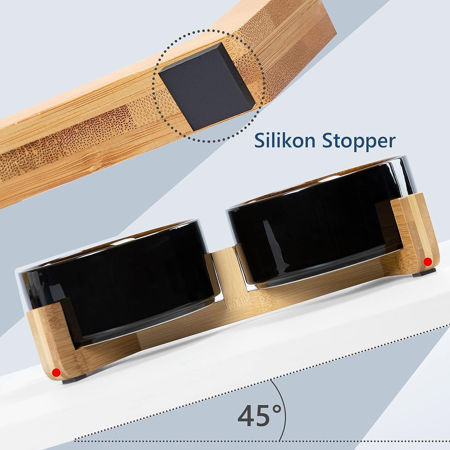 - [Double Bowl Design]:One dog bowl for food and one for water, Each ceramic cat bowl has a Unique wooden stand, raising the dishes closer to your pet for more comfortable eating