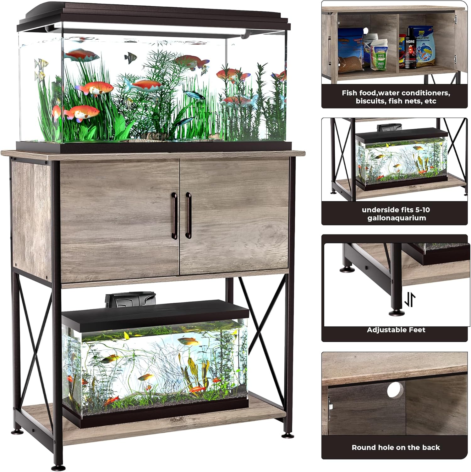 - Modern Appearance: Aquarium stand features a modern Grey design that matches various home decor styles. This design is not only practical but also beautiful, making it the perfect decoration for your home. Tanks not included. Support dimensions: 30.7" x 16.5" x 31.88".