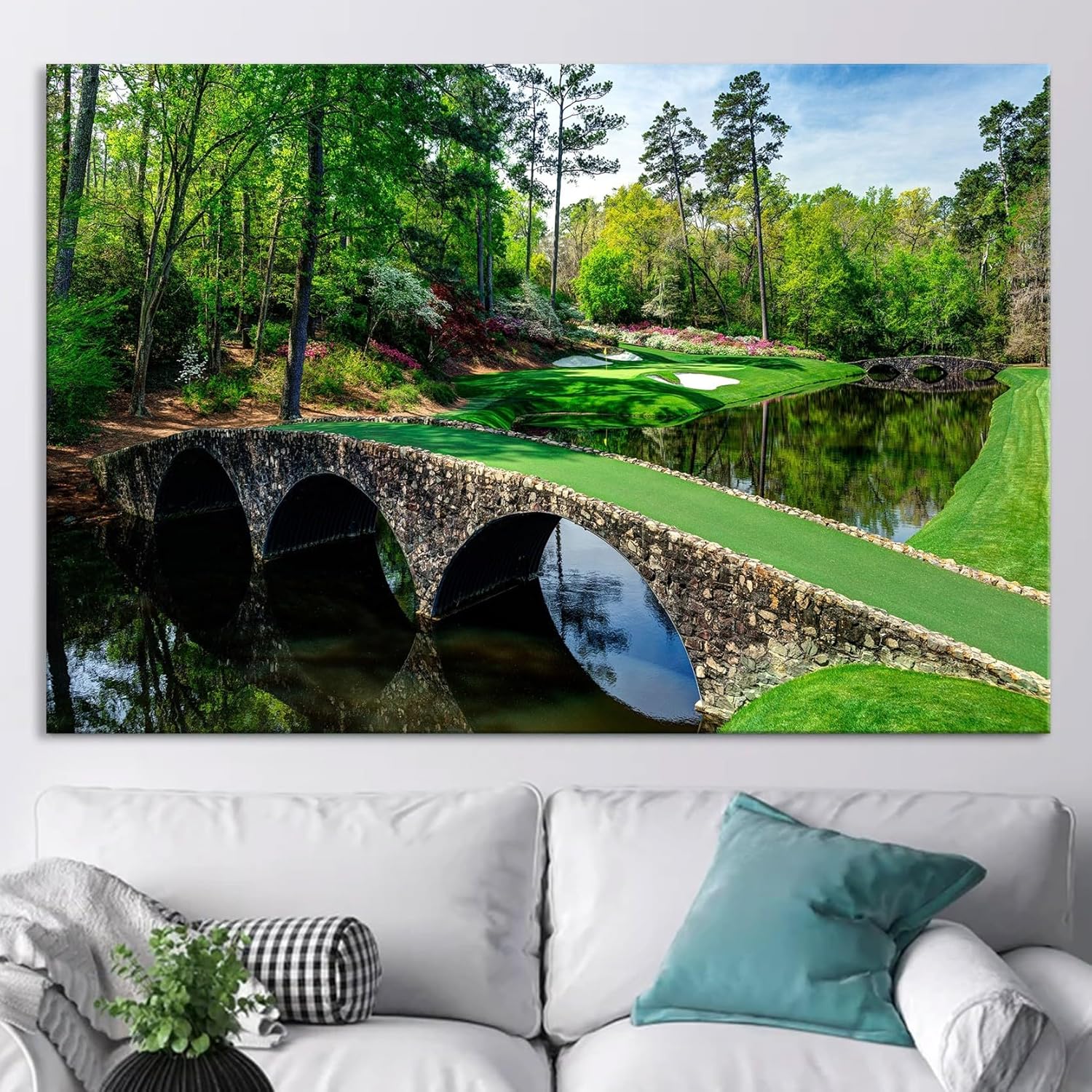 Nature Wall Art Prints - Ocean Forest Mountain Lake Canvas Landscapes - Small to Extra Large Living Room Bedroom Kitchen Bathroom Décor (Golf Course with Stone Bridge, 24L" x 36W")