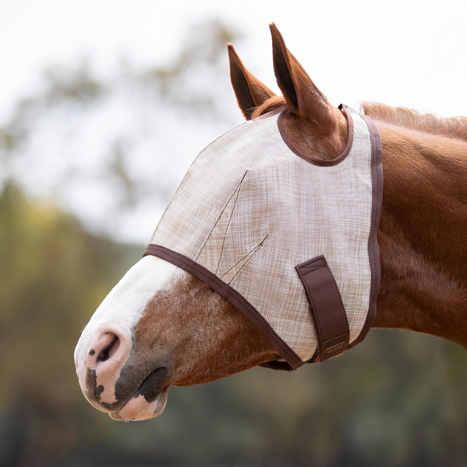 Kensington UV Horse Fly Mask with Web Trim - Protective Mask with Dual Ear Opening & Forelock Freedom - XLarge, Desert Sand