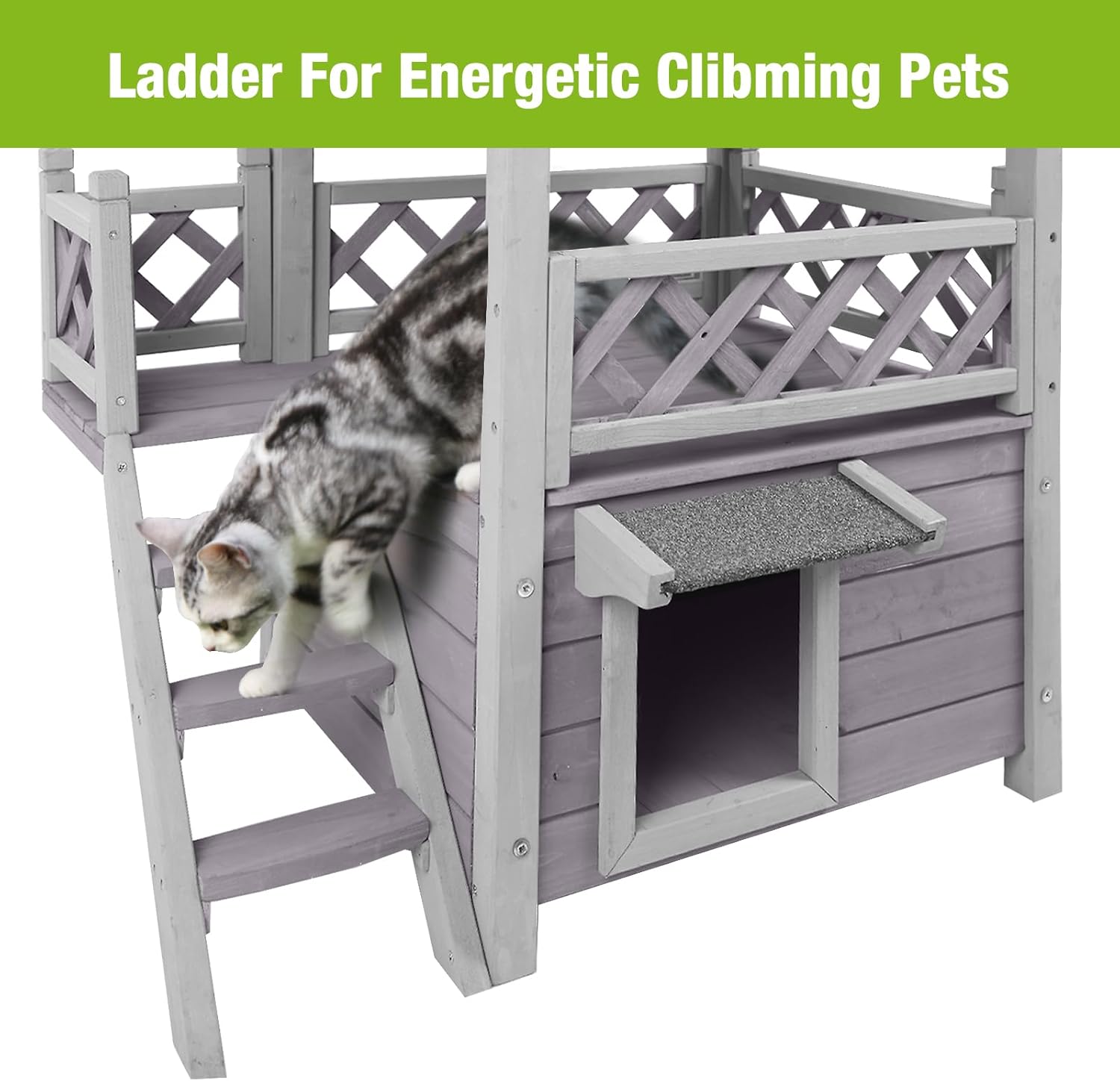 - 【Strong And Sturdy】Crafted from 100% solid fir wood instead of plywood/particleboard to avoid delaminating after usage.This cat shelter guarantees durability and sturdiness