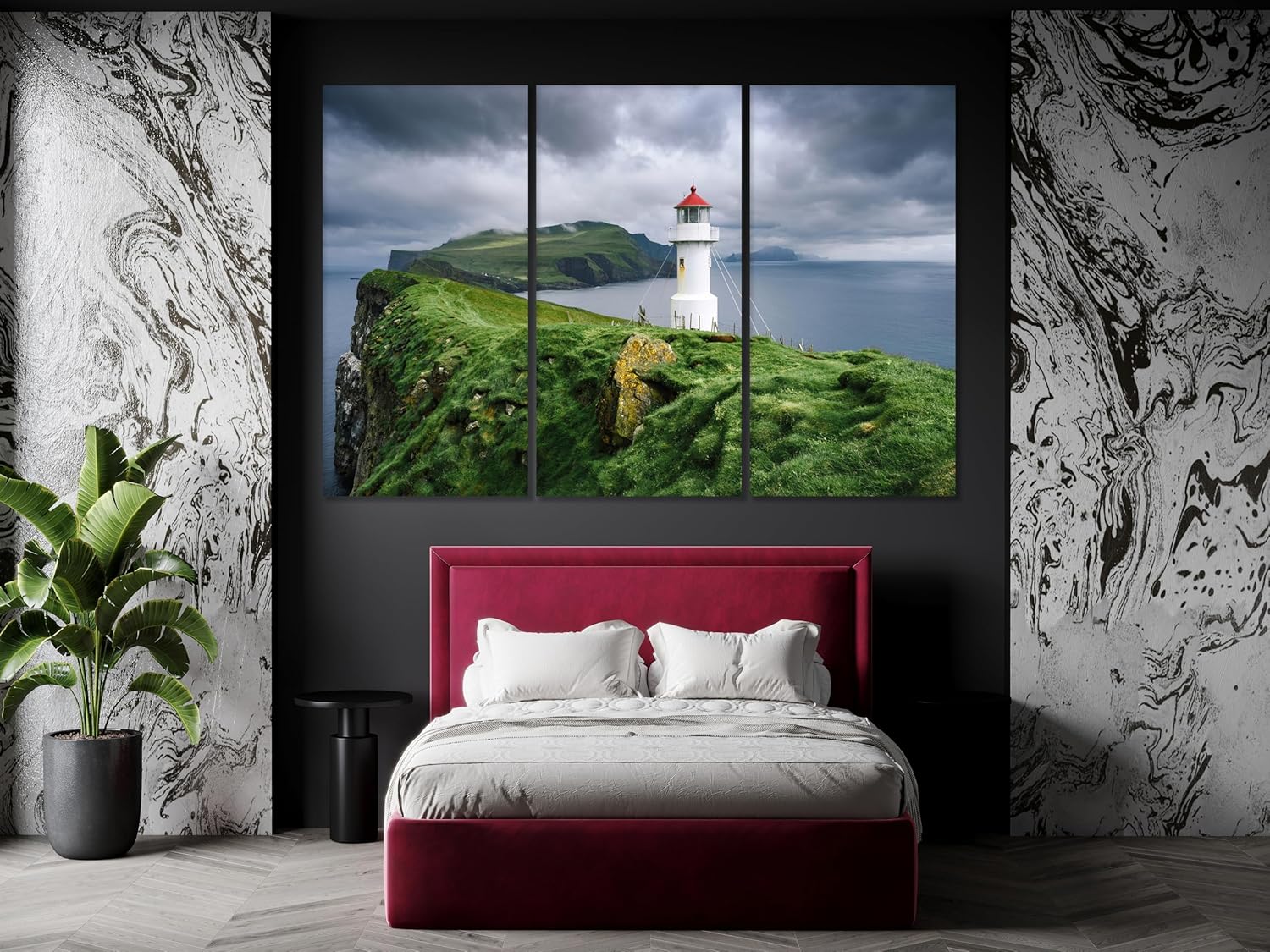 Nature Wall Art Prints - Ocean Forest Mountain Lake Canvas Landscapes - Small to Extra Large Living Room Bedroom Kitchen Bathroom Décor (Stormy Sky Lighthouse, 35L" x 53W")