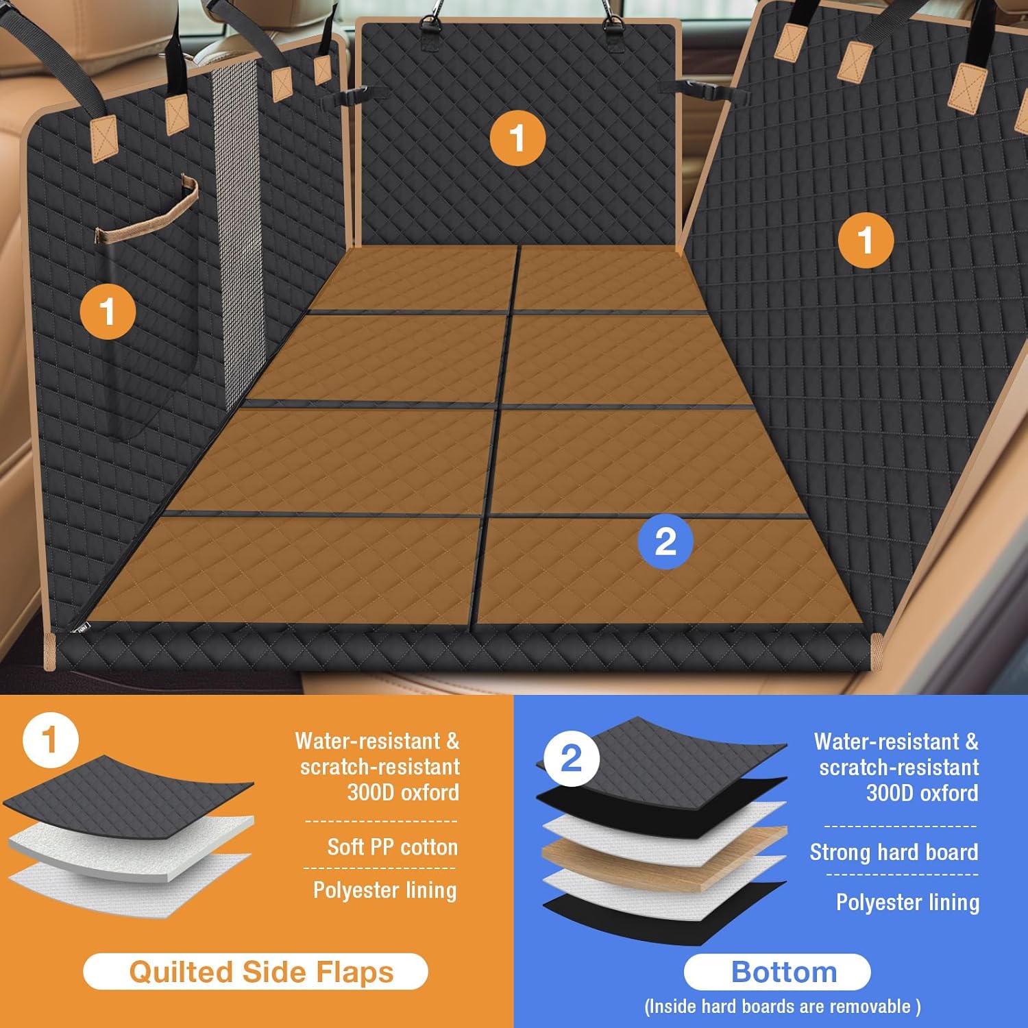 Dog Car Seat Cover for Back Seat, Dog Car Bed Cover with Hard Bottom, Backseat Extender Hammock for Mid-Sized Truck/SUV 8 Panels - Black