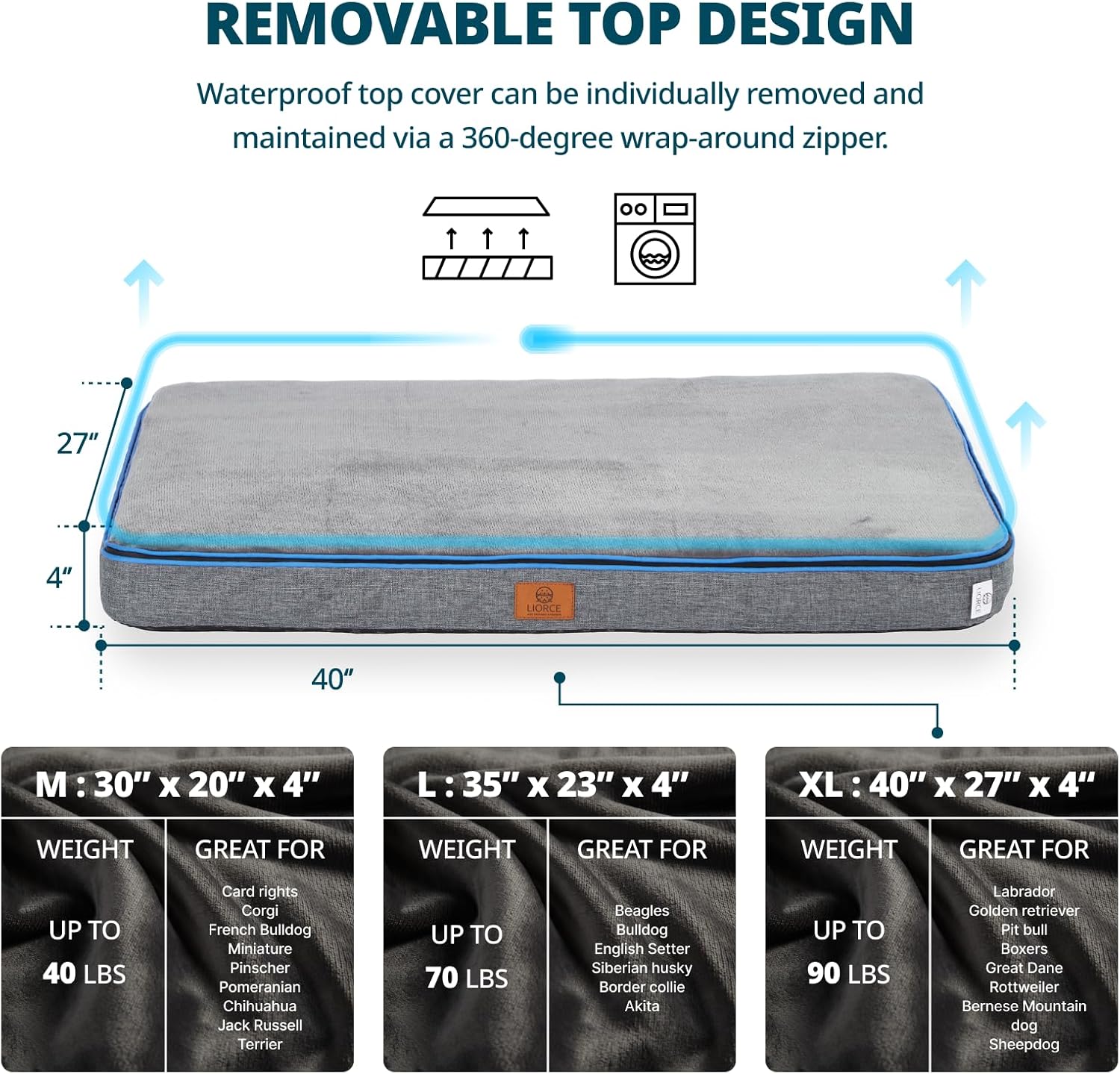 Memory Foam XL Dog Bed - 4” Thick Orthopedic Beds for Extra Large Dogs - Waterproof Dog Bed with Removable Washable Cover & Wrap-Around Zipper - Ultimate Comfort and Easy Maintenance