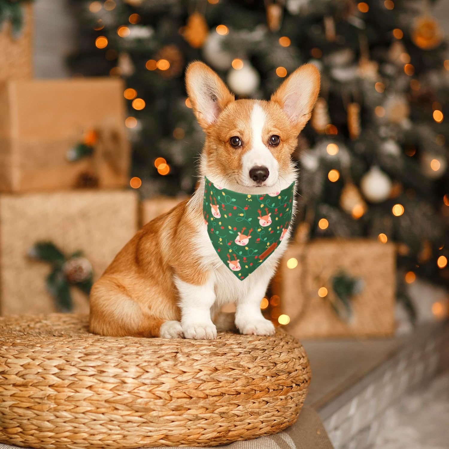 - Christmas Dog Bandanas: Use traditional christmas red green color, designed with xmas-themed santa, snowflake, string lights and deer pattern, full of christmas atmosphere, make your pet look more more fashion and eye-catching during holiday.