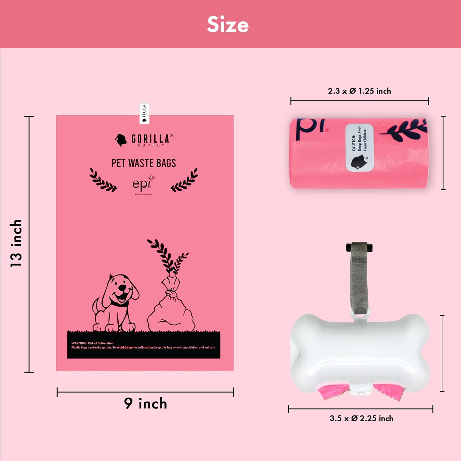 - SUPER VALUE PACK: 1000 Count Poop Bags (50 Rolls with 20 Bags per Roll) with 1 Bone Shaped Patented Dispenser. A Value Package is Sufficient for More than a Year's Use. Our Pet Waste Bag is Designed for your Convenience. Each Large Pet Waste Bag Measures 9 X 13 inches, that is Enough Capacity for All Sizes Dogs and Cats.
