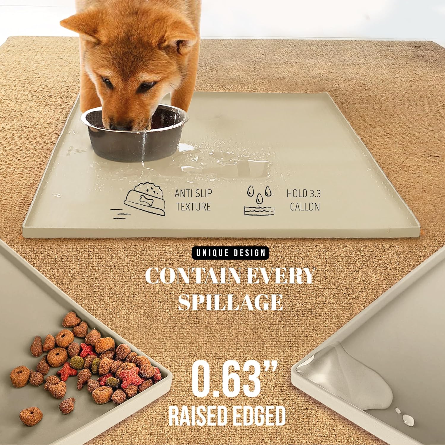 - Mess-Free Feeding: Tired of messy eaters? Our redesigned 23.5x15.5'' pet placemat for food and water, with a 0.63" high and firm raised edge, corrals kibbles and water for easy cleanup. No more spills, just happy feeding for your pets