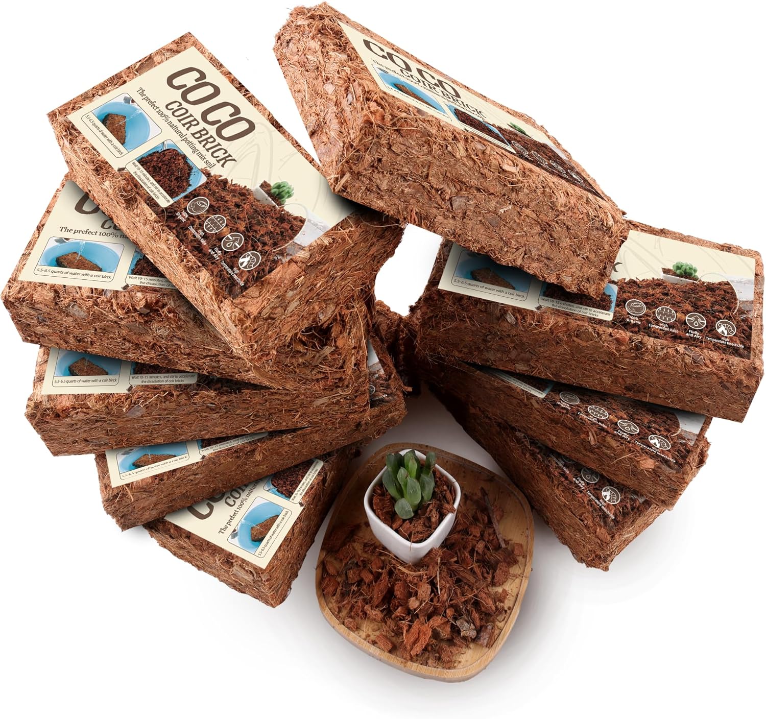 - [100% NATURAL & ORGANIC COCONUT CHIP]: Our coco chips bricks is made from the coconuts husk, which are a natural and sustainable resource. It is providing a natural and eco-friendly growing medium for your plants making coconut husk chips an eco-friendly choice for your gardening needs. As well landscaping, reptile bedding, terrarium bedding, and ground covering.