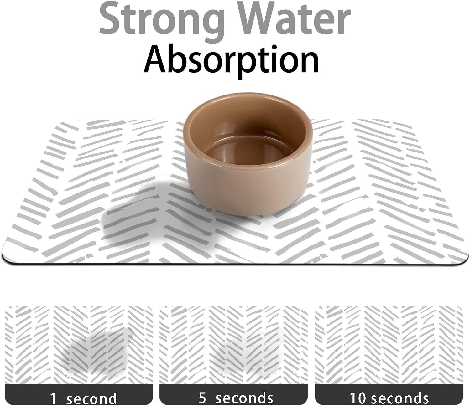 - Absorbent & No Stains: The pet food mat made of high quailty material can absorb spilled water in just a few seconds and leaves no stains. The dog bowl mat provide a dry clean eating area for your puppy.
