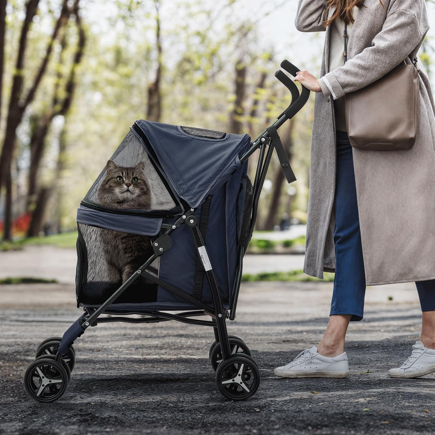 - Great for Travel - It's a great option for people with smaller pets or older pets that can't take long walks. The collapsible design of our dog stroller makes it ideal for traveling and camping. Plus, you won't have to worry about your pets turning into hyperactive cuties with the jogger stroller's folding feature and lightweight yet sturdy support. Our pet carrier folding system also makes it super easy to fit in the trunk of your car.